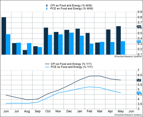 The Personal Consumption Expenditure (PCE) Price Index increased 0.6% in May, after rising only 0.2% in April. PCE inflation is an alternative inflation measure to the Consumer Price Index (CPI), which is released earlier. The two measures both show inflation to be very high, but the CPI indicates prices have risen 8.6% in the last year, while PCE inflation has increased only 6.3%. The biggest difference is the basket of goods that make up each measure. For example, PCE inflation includes a wider range of medical costs, which have not increased as much as energy prices. Energy comprises 7% of the CPI and just 4% of the PCE. The Fed has indicated it favors the PCE measure, modified to exclude food and energy. PCE ex food and energy increased just 0.3% as gasoline prices rose significantly in May.