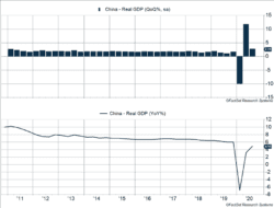 • Virus control allows growth activity to resume: China is reporting a very small number of new COVID-19 cases. Strong testing and draconian restrictions allowed the Chinese to get control of the virus more rapidly. Even discounting the accuracy of Chinese data, China’s situation has improved more quickly than the rest of the world. Once virus cases dropped to low levels, economic activity was slowly allowed to resume. A more severe decline in the first quarter allowed a sharper rebound in the second quarter. China is the only major economic region expected to grow in 2020.